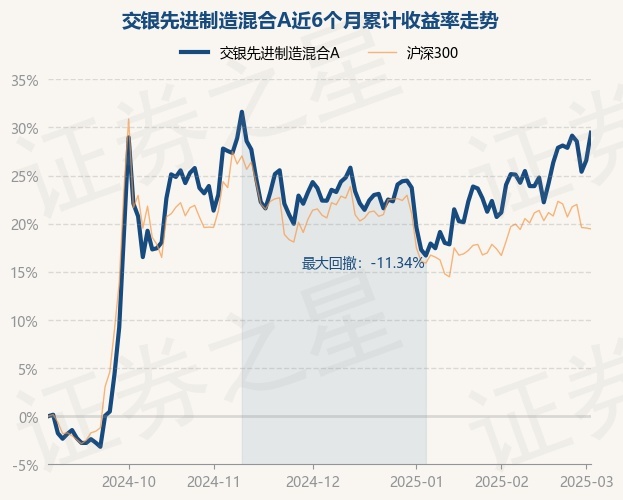 本站音问,3月4日,交银先进制造夹杂A最新单元净值为3.8813元,累计净值为5.3323元,较前一交游日飞腾2.27%。历史数据露馅该基金近1个月飞腾7.25%,近3个月飞腾5.76%,近6个月飞腾29.45%,近1年飞腾11.89%。该基金近6个月的累计收益率走势如下图: