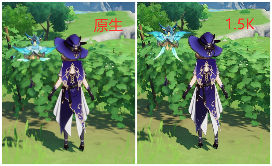 那咱们聘请极致画质,这期间游戏画面隔离率有了较着的扶植,来到了1.5K隔离率。对比原画质,超分之后的画面有了肉眼可见的画质扶植,不雅感还口角常可以的。