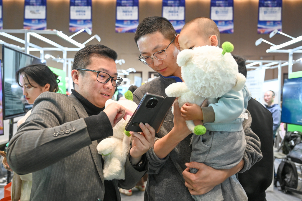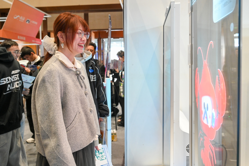 3月27日,上海西岸海外会展中心,不雅众和东说念主工智能建造对话。滂沱新闻记者 朱伟辉 图
