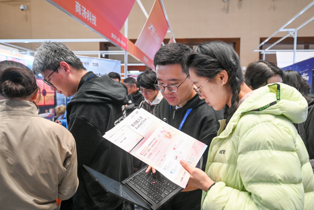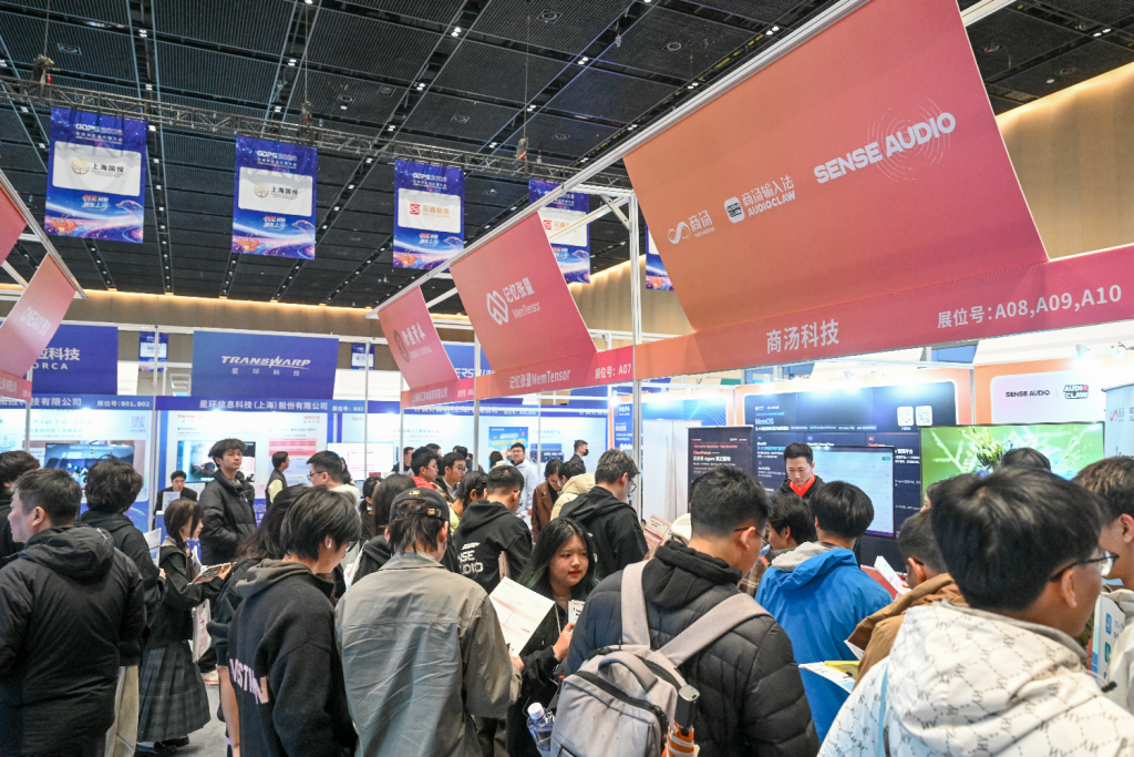 3月27日,上海西岸海外会展中心,商汤科技责任主说念主员向不雅众演示AI语音绽开平台SenseAudio。滂沱新闻记者 朱伟辉 图