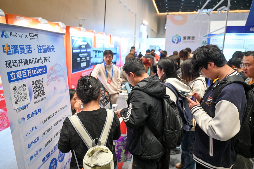 3月28日,上海西岸海外会展中心,现场注册不错参预抽奖得百万tokens的步履蛊卦稠密不雅众。滂沱新闻记者 朱伟辉 图