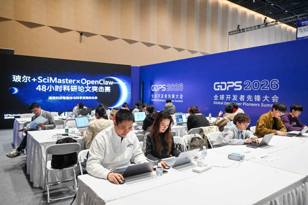 3月28日,上海西岸海外会展中心,参赛者在进行48小时科研论文突击赛。本次大赛通过科研智能体矩阵(OpenClaw、SciMaster、BohrClaw等)的深度协同,探索东说念主机和洽下的论文写稿新范式。参赛者需要在48小时内,围绕自选题目,借助智能体完成从选题构念念、文件分析、科学策动到论文撰写的全过程,极速产生一篇冲击SCI的学术论文。滂沱新闻记者 朱伟辉 图