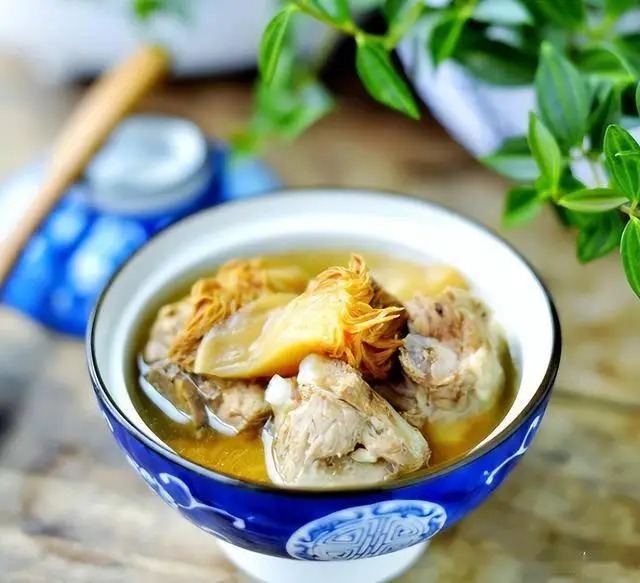 5. 加入泡发好的猴头菇块,不息小火炖煮20 - 30分钟,让猴头菇充分领受排骨的汤汁。