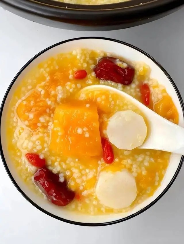所需食材:南瓜200克、小米100克、红枣5 - 6颗、冰糖适量。