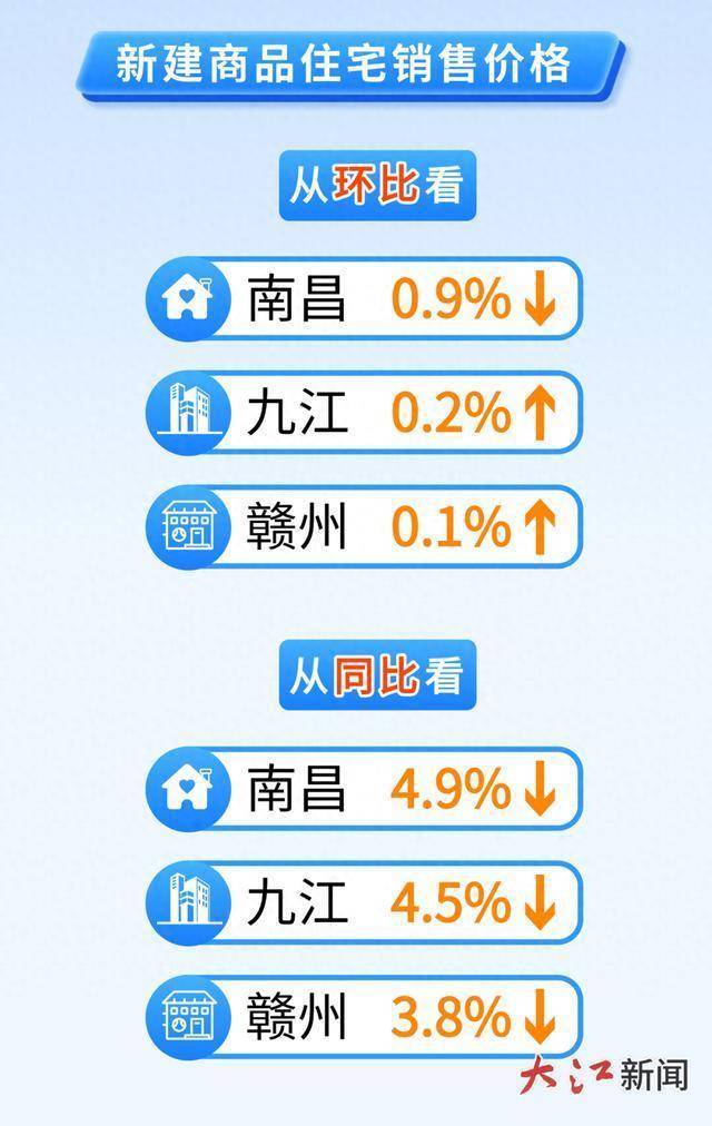 从环比看,新建商品住宅价钱两涨一跌,二手住宅价钱三城市着落。新建商品住宅销售价钱方面,5月份南昌、九江和赣州环比差别着落0.9%、高潮0.2%和高潮0.1%。二手住宅价钱方面,5月份南昌、九江和赣州环比差别着落0.7%、0.7%和0.4%。